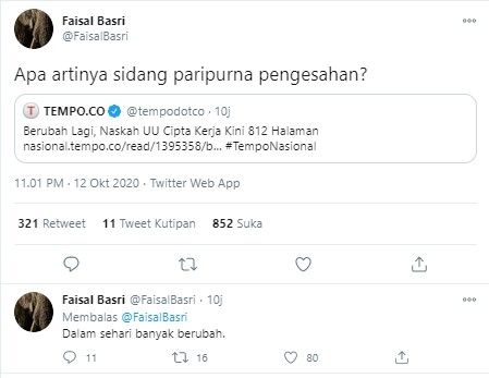 Berdasarkan pantauan kompastekno tak sedikit warganet yang membagikan kicauan mereka dengan menggunakan tagar dprimpostor. Dalam aksinya mereka menolak omnibus law rancangan undang undangan ruu cipta kerja karena dinilai lebih menguntungkan pengusaha serta mengancam akan melakukan mogok nasional pada 6 8 oktober 2020 atau saat sidang paripurna dpr membahas ruu cipta kerja. Pengesahan uu cipta kerja ini menjadi perbincangan warganet di media sosial twitter. Kontancoid pembahasan mengenai omnibus law rancangan undang undang ruu cipta kerja masih terus berlangsung.