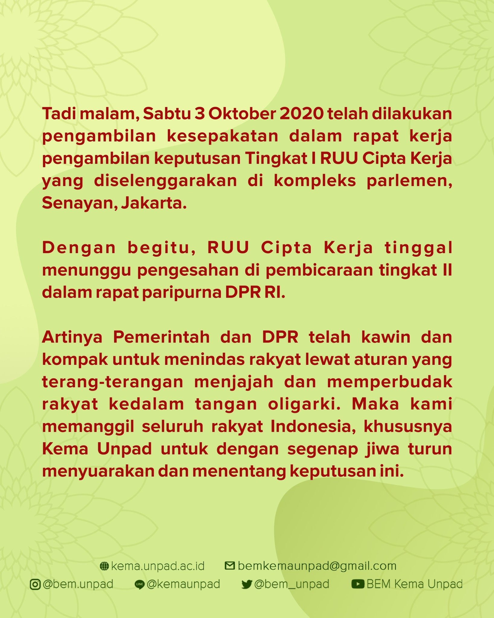 Berdasarkan pantauan kompastekno tak sedikit warganet yang membagikan kicauan mereka dengan menggunakan tagar dprimpostor. Aditya pradana putra sejumlah buruh berunjuk rasa di depan kompleks parlemen jakarta rabu 3092020. Pengesahan ruu cipta kerja ini bersamaan dengan penutupan masa sidang pertama yang dipercepat dari yang direncanakan. Dalam aksinya mereka menolak omnibus law rancangan undang undangan ruu cipta kerja karena dinilai lebih menguntungkan pengusaha serta mengancam akan melakukan mogok nasional pada 6 8 oktober 2020 atau saat sidang paripurna dpr membahas ruu cipta kerja.