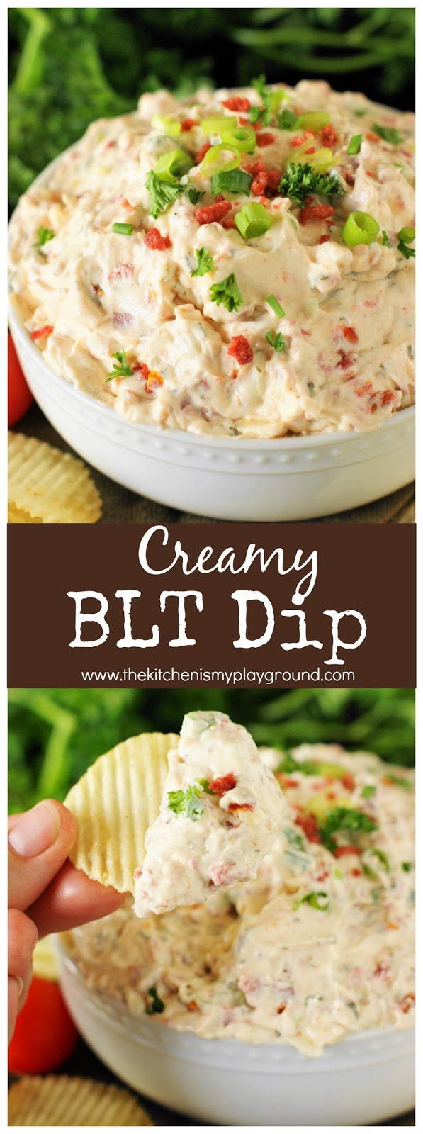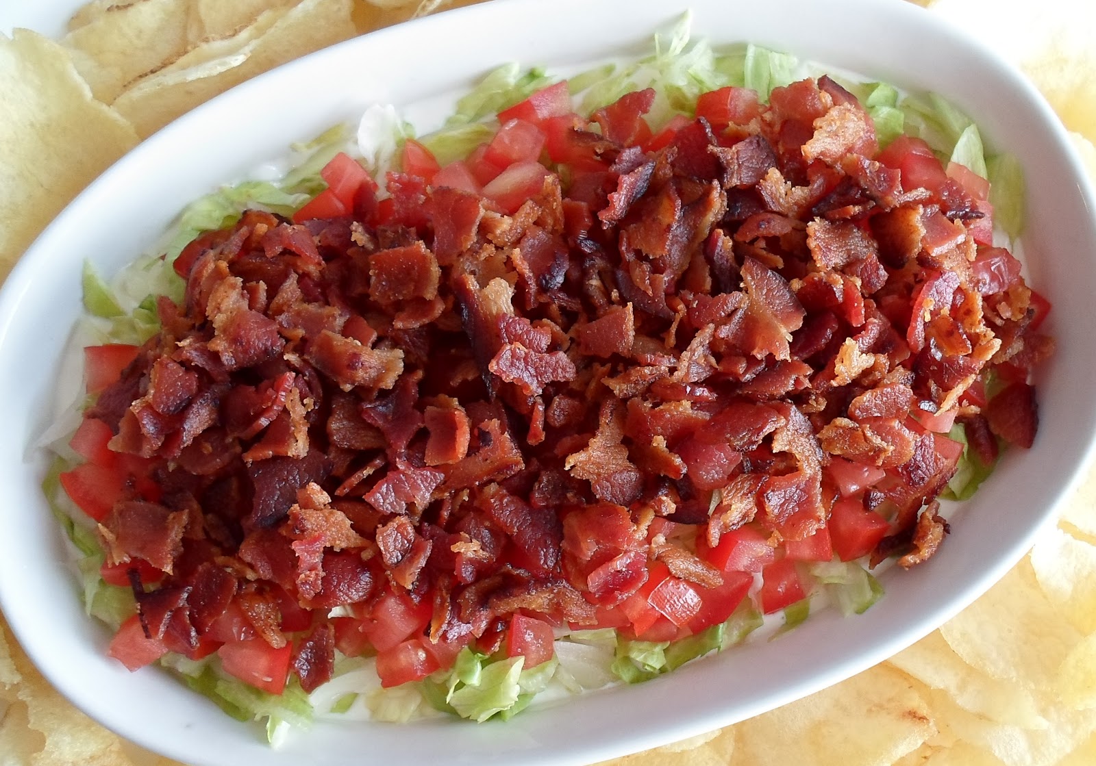 Blt dip recipe with bacon bits. Step 2in a medium bowl combine mayonnaise and sour cream. Bunch green onion chopped amt depends on your taste 6. Ingredients 2 cups sour cream 2 cups mayonnaise 2 pounds sliced bacon cooked and crumbled 6 plum tomatoes chopped 3 green onions chopped additional crumbled cooked bacon and chopped green onions optional assorted crackers or chips. 12 cup bacon bits can be substituted for the bacon.