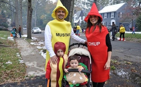 The key is to dress every member of the family the same and include a piece with an intricate pattern. Weve only done one of these on the list but now that we have 4 members of the family we have more options. Adult couples hot dog and bun halloween costume. These whimsical family halloween costumeswith mom and baby dressed as rain clouds and dad as a thunderboltis sure to spark a smile.