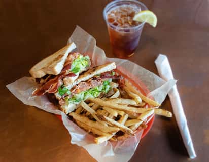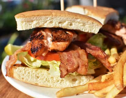 Monster blt double thick bacon thick sliced tomato lettuce mayo 899. Choice of white wheat or roll. Ham cheese 699. Grilled or crispy chicken 799 w cheese bacon 899.