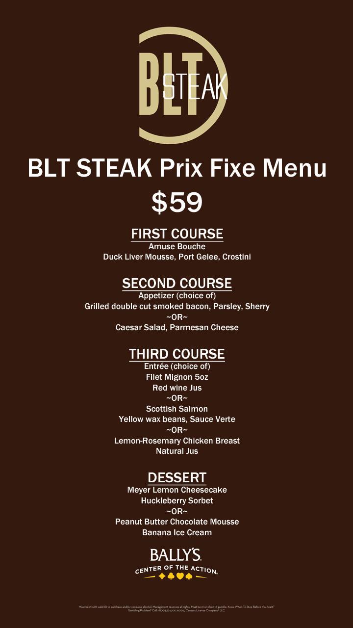 The menu showcases raw bar selections signature warm popovers top notch steak and fish and flavorful sides skip to main content. White plains temporarily closed ballys las vegas hotel casino 3645 las vegas blvd. Blt prime offers contemporary steakhouse fare with modern accents. The hanger steak on the dinela menu did not impress me.