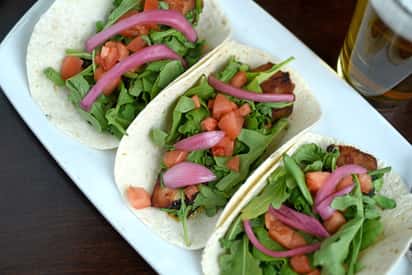 Add 12 slices of cooked bacon to each taco. Repeat until all tortillas are toasted. Ingredients 1 lb boneless skinless chicken breasts garlic powder to your taste salt and pepper also to taste.