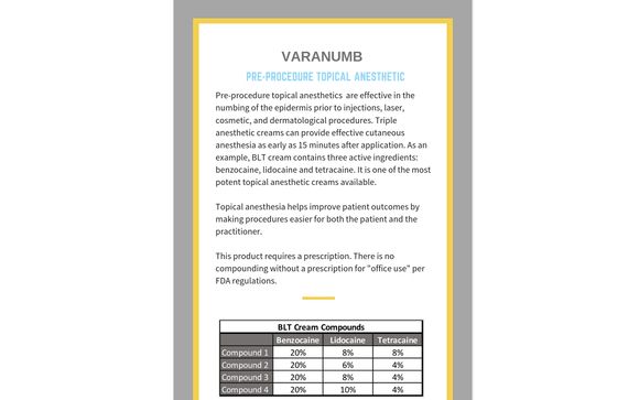 Dermatologists are more and more using topical anesthetic creams prior to dermatologic procedures rather than more invasive modes of anesthesia that involve needles. Blt numbing cream benzocaine lidocaine tetracaine is a triple action topical anesthetic that is made in compound pharmacies for use by clinicians who perform minimally invasive procedures on the face and sometimes other parts of the body. Triple anesthetic creams can provide effective cutaneous anesthesia as early as 15 minutes after application. Eliminate legal exposure neuromed blt is a variety package that contains the topical anesthetic analgesics.
