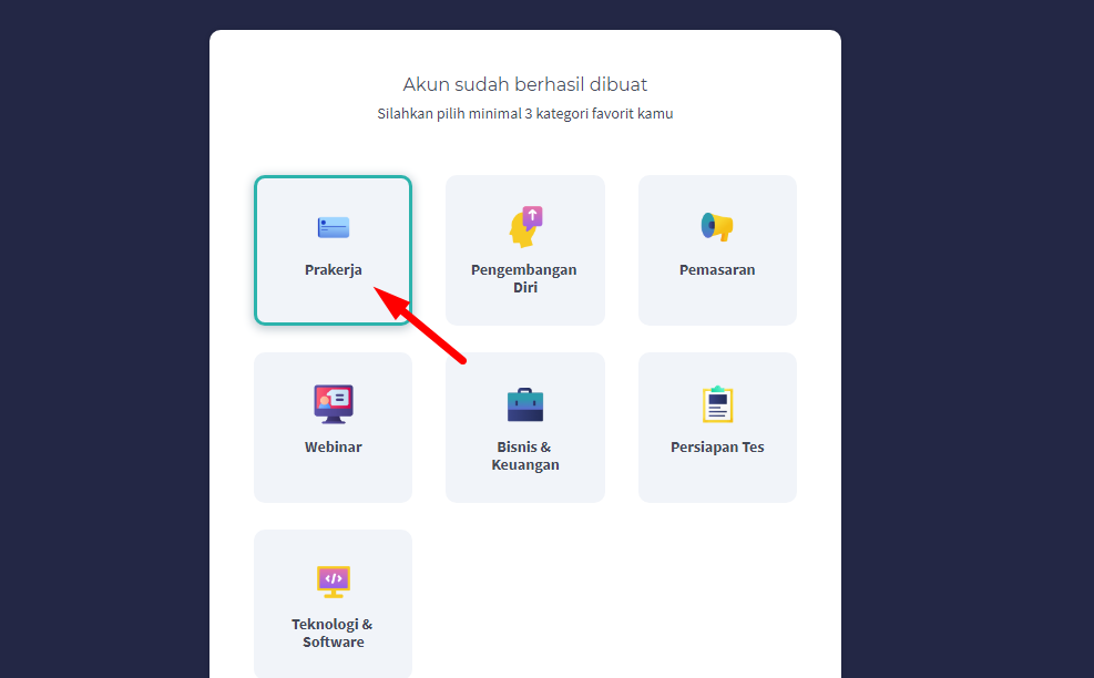 Cara mengikuti webinar kartu prakerja untuk bisa mengikuti pembelajaran webinar atau web seminar ini sebelumnya anda harus membeli pelatihan yang bisa dipilih melalui dashboard prakerja langsung.
