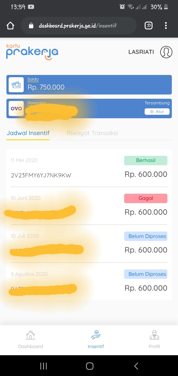 Gambar insentif prakerja berhasil. Penyebab status insentif prakerja dana tertahan dan e wallet belum kyc. Tampilan dashboard insentif tersebut baru yang sebe. Gunakan kode tambahan untuk pelatihan selanjutnya. Status insentif prakerja ada beberapa macam seperti menunggu proses dijadwalkan dan berhasil ditransfer.