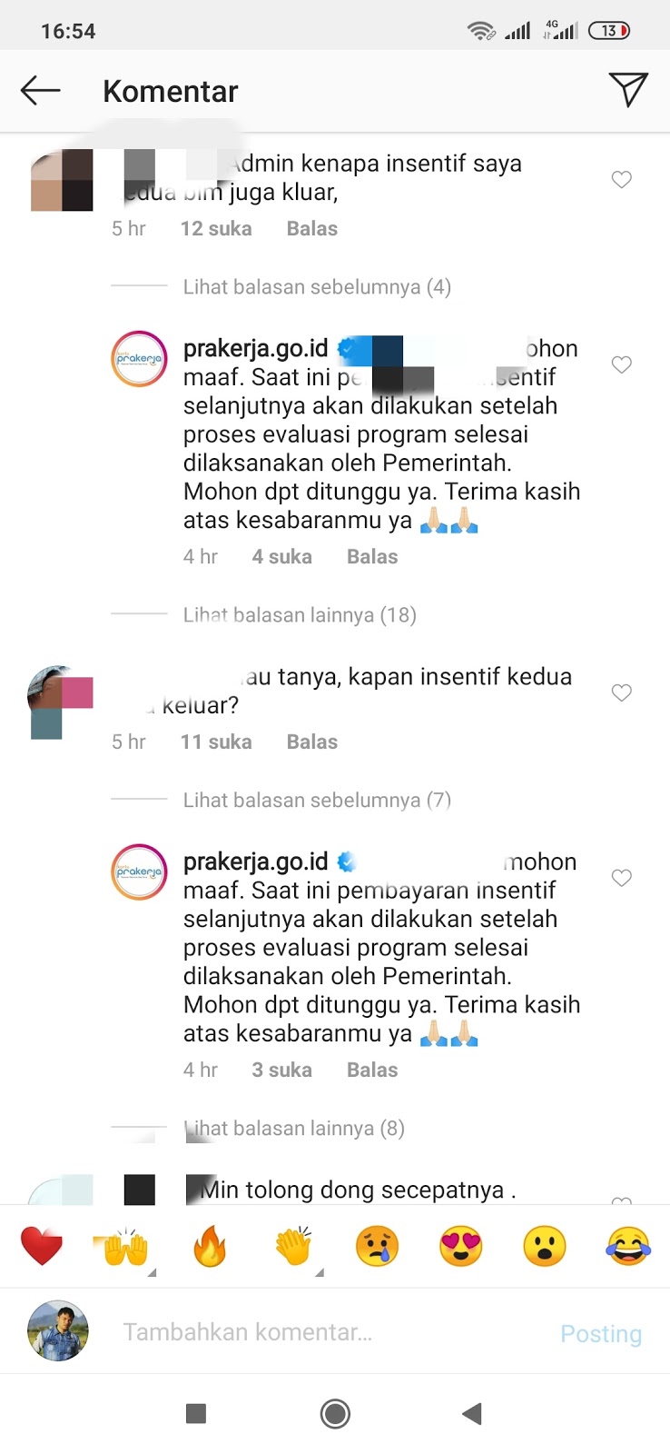 Insentif prakerja belum cair sampai hari ini. Sampai detik ini terhitung lebih dari 14 hari setelah semua point saya selesaikan sertifikat belum juga masuk ke dashboard prakerja jadwal insentif tak kunjung ada perihal permasalahan tsb saya sudah mengemail cs menghubungi dm ig luarsekolah masih tidak ada jawaban sama sekali saya mengemail prakerja hanya mendapat jawaban antrian. Jika sudah lebih dari 5 hari kerja tapi insentif tak kunjung cair maka kalian dapat menghubungi call center kartu prakerja untuk bertanya mengenai insentif kalian. Semoga ke depan akan lebih lancar tutur denni. Direktur eksekutif manajemen pelaksana kartu prakerja denni puspa purbasari pun sempat menyatakan insentif akan diterima oleh peserta paling lambat jumat 152020 lalu.