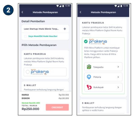 7 memasukkan kode voucher kelas skill academy setelah kalian mendapatkan kode voucher dan kalian sudah mengcopynya maka kembali lagi ke website skill academy lalu kalian cari kembali kelas yang kalian pilih tadi dan ambil kelas lalu klik beli seperti tahap memilih kelas diatas namum perbedaanya saat melakukan pembayaran. Klik beli kursus online ini. Belum dapat konfirmasi transaksi berhasil voucher juga belum dapat namun dari dashboard prakera saldo sudah terpotongdan status aktif dan berhasil. Ka nama saya terdaftar dalam prakerja gelombang 6membeli pelatihan di tokopedia dg judul sukses bisnis olshop dengan instagram.