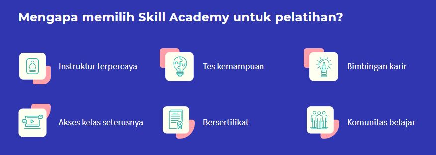 Melalui situs dan aplikasi tersedia ratusan kelas pelatihan secara online dalam bentuk video belajar dengan topik seperti pengembangan diri persiapan tes pemasaran teknologi software serta bisnis keuangan. Skill academy by ruangguru adalah platform pelatihan online offline bersertifikat terbesar di indonesia.