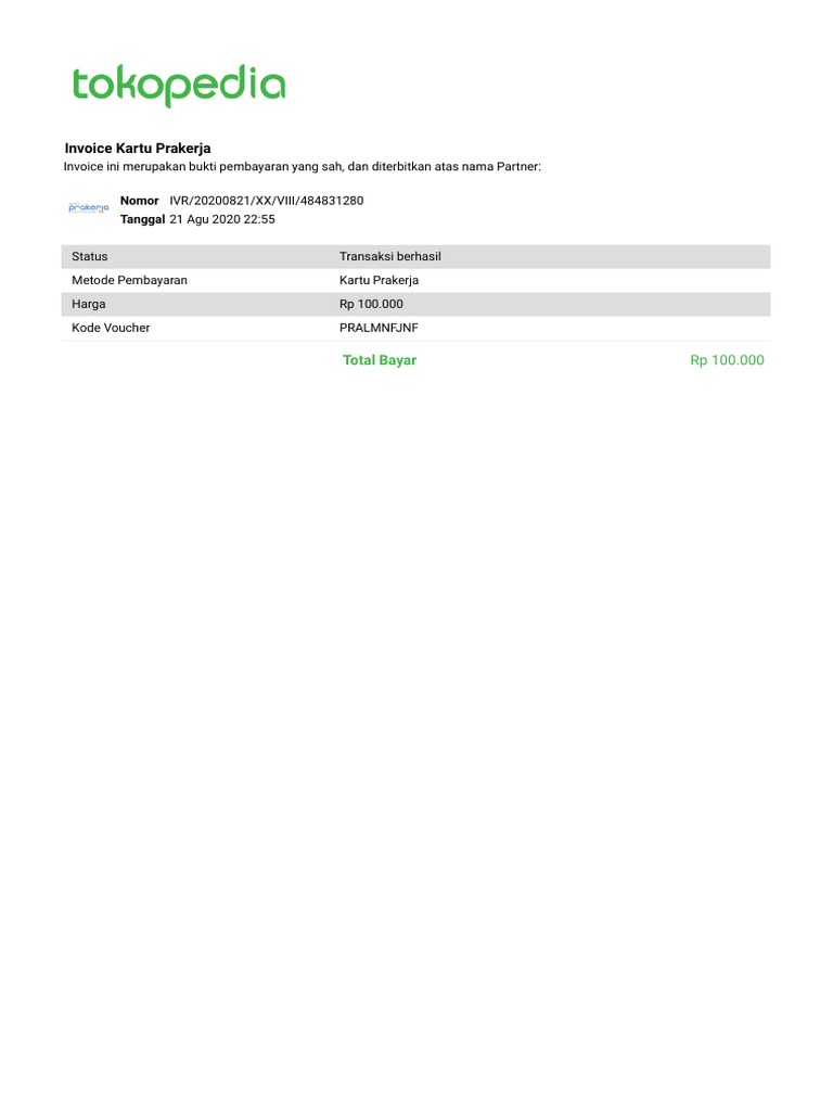 Nomor Invoice Prakerja