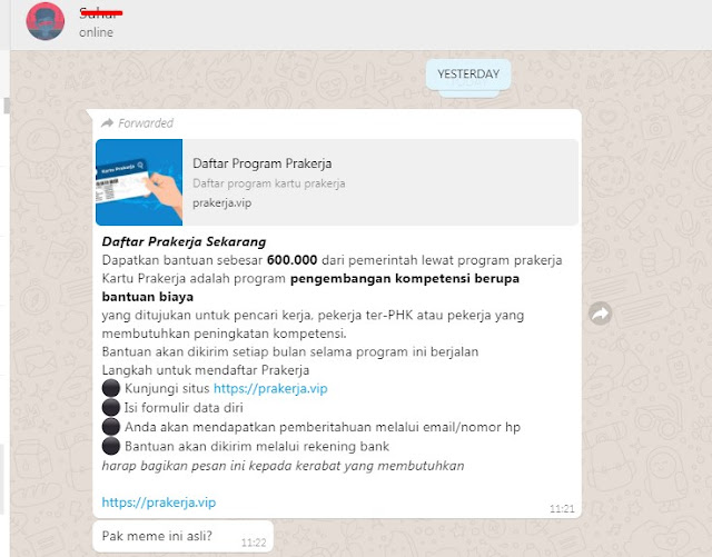 Jika menggunakan smartphone anda langsung ke website mirip sekali web prakerja asli.