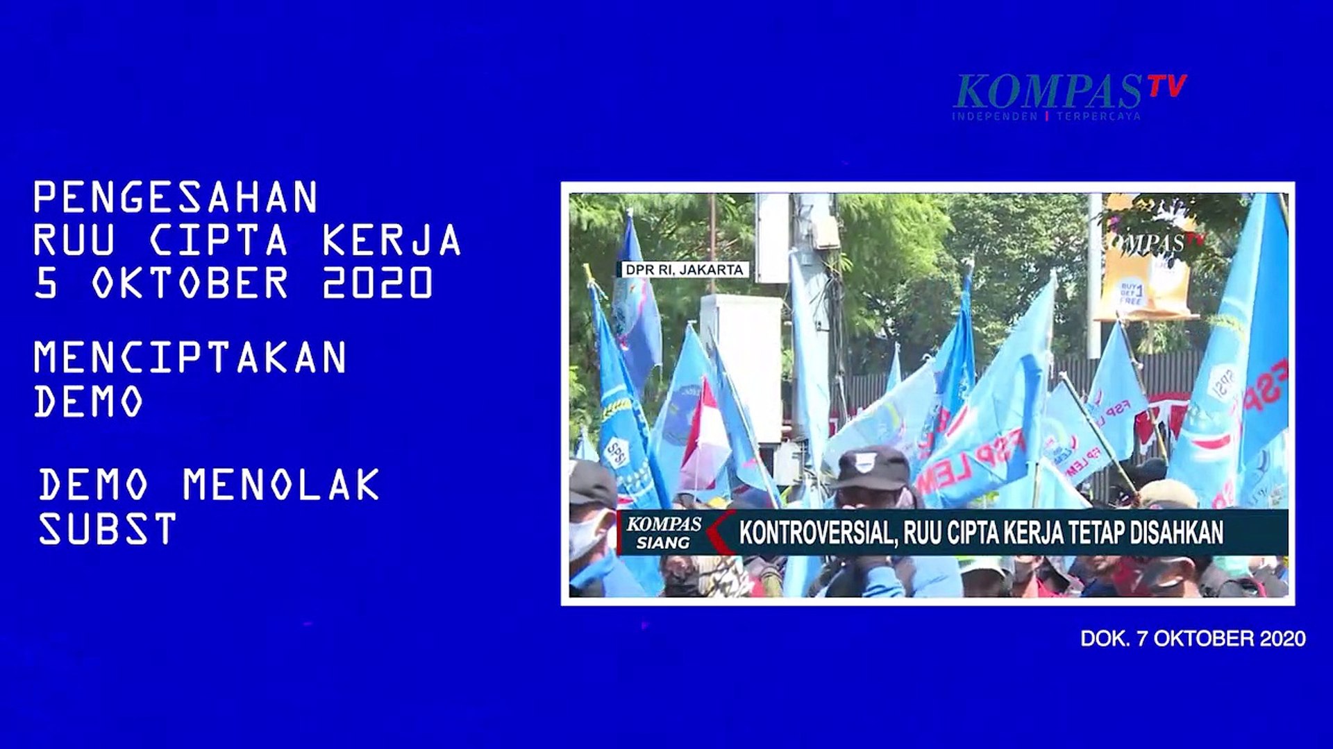 Buruh kembali demo tolak omnibus law di patung kuda cnn indonesia news report. Alhamdulillah presiden joko widodo secara resmi menandatangani naskah uu cipta kerja pada tanggal 2 november 2020 menjadi undang undang republik indonesia no. Aksi demo menolak ruu cipta kerja terjadi di sejumlah wilayah hari ini. 11 tahun 2020 tentang cipta kerja pada lembaran negara no.